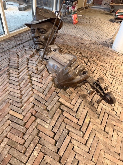 In de Stopera in Amsterdam ligt een bijzonder kunstwerk: De Violist van een anonieme beeldhouwer. Een bronzen hoofd met hoed, hand en viool dat uit de grond lijkt te komen – of er juist in verdwijnt. Voor deze unieke ruimte verzorgden wij het complete werk en de technische voorbereiding.