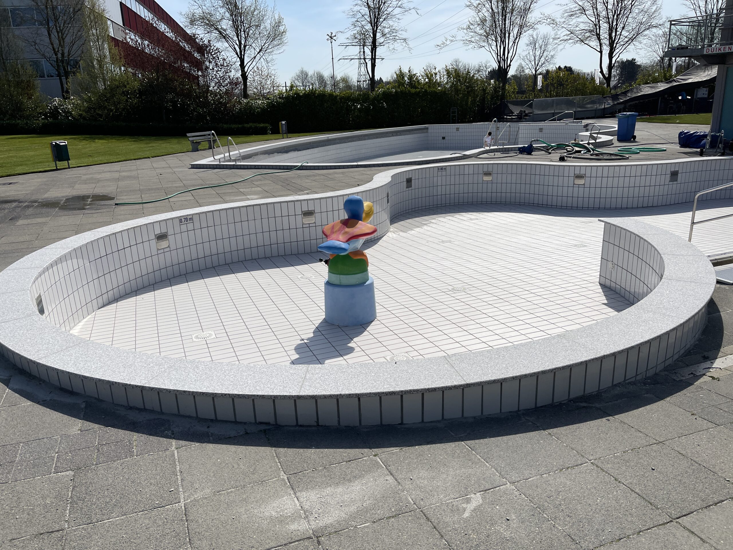 Het recreatiebad en doelgroepenbad kampten met structureel falen van alle loopoppervlakten. In totaal moest 810 vierkante meter volledig worden gesloopt en opnieuw opgebouwd. Maar het bleef niet bij de vlakke vloeren – ook de overloopgoten bleken aan vervanging toe.